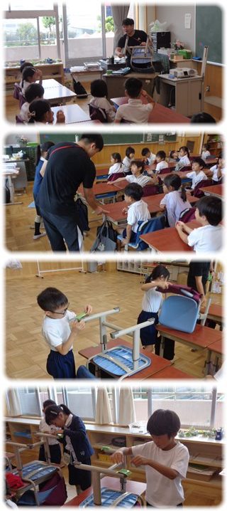 教師が、緑の養生テープを手に説明を始めたのは、“いすの脚の養生”のこと。