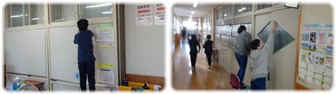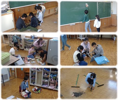 黒板下に置かれた踏み台の下、ロッカーの裏…、いつもはしないところのごみを掃き出し、黒板も水ぶき。