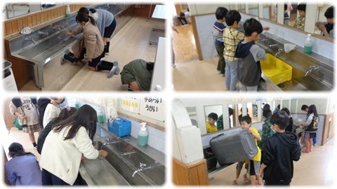 全校一斉、2時間目に45分間かけて、浜田小学校を掃除しました。