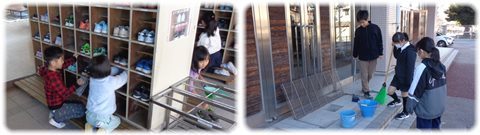 学級文庫の本棚は、きれいに拭いてから本を並べて整とん。