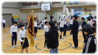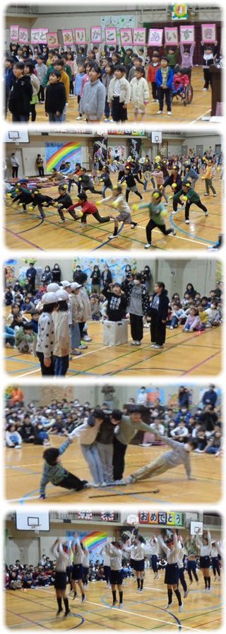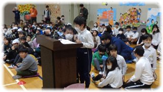 全校の子どもたちが体育館に集い、“6年生を送る会”を開いて6年生の卒業を祝いました。