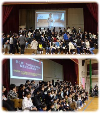 この後、みんなで歌った校歌は、今年度、浜田っ子全員がそろって歌う、最後の校歌。