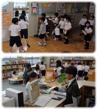今日は雨と言うこともあって、20分休みになると、たくさんの子どもたちがやってきて、吸い込まれるように図書室に入っていき、返却の手続きをしたり新たに本を選んだりし始めました。