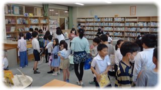 カウンター目を向けると、さっきまであった返却する子の列がほぼなくなり、代わりに借りる手続きをしようとする子がズラーと並んでいました。