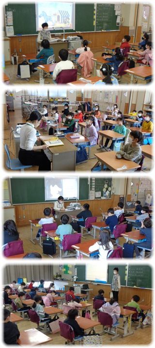 図書ボランティアの皆さんが各教室を順番に回って、子どもたちのために選んだ絵本を読んで聞かせてくれました。