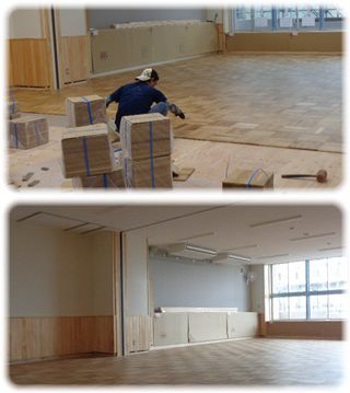 3階に上がると、既にその工事は終わり、一面に床材がはられています。
