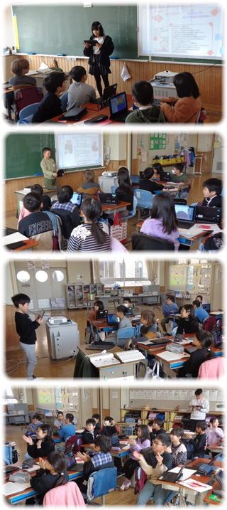 この時間は、それをスクリーンに大きく映して、クラスのみんなに、実際に本をすすめる時間です。