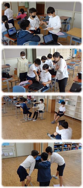 2人のポジションやカメラアングルを考えて撮影し、撮影してはそれを再生してグループの子と一緒に見て、気づいたことを出し合っていました。