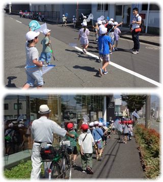公園の入口で待っていると、虫かごを肩に掛け、槍のように虫網を掲げた子どもたちが、列をなして勇ましく歩いてきました。