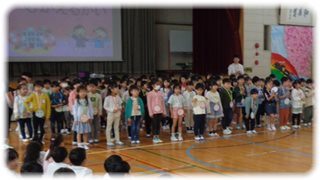 2年から5年の子どもたちが静かに並んで待っている体育館。