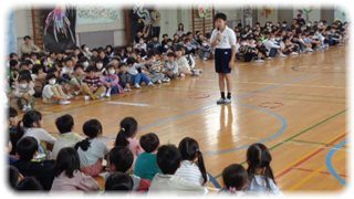 「校長先生の話」では、ペンダントを作ってくれた2年生と運営に携わった6年生、そして、この場で会を盛り上げた3~5年生にお礼を言い、はまだっ子は優しい子ばかりだから、人のことも自分と同じように大事にして、みんなの心がつながってほしいという、私の願いを伝えました。