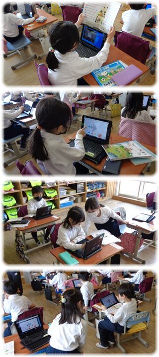 子どもたちは、この色板を指またはタッチペンで動かして輪郭の中に並べて、すき間や重なりがないように敷き詰めてきれいな熱帯魚を作ります。