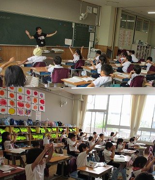先生と一緒に、「にじ」を体を動かしながら歌っていました。