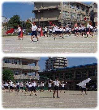 団長がリードしての“三々七拍子”では、手が痛いのではと思うほど強く手を打ち鳴らして自分たちを応援していましたし、声を出しての応援では、応援団長の「勝つぞー」や「○○の色は?」などの大きな声での呼びかけに、5,6年生と観覧席の子どもたちは、こぶしを突き出しながら「オー!」「赤・白」と声に出して応えていました。