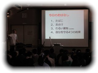 本日は、たばこ、お酒、薬物、そしてそれらの誘いから自分を守る方法についてお話しいただきます。