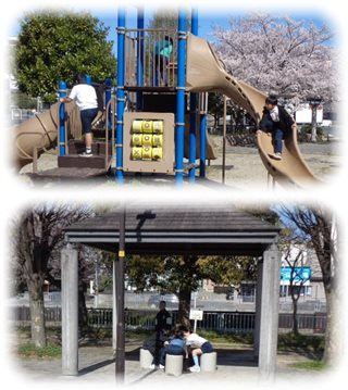 遊具で遊んだり東屋の下でまったりと過ごしたりして楽しんでいました。