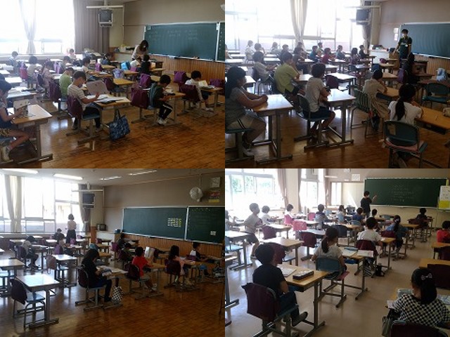 どの学級でも、1限目は休み中、どんな気持ちで過ごしていたか、不安に思うことはなかったなどの話を聞き合い、その後は宿題の確認や直しをして過ごしました。高学年では掃除の時間をとる学級もありました。