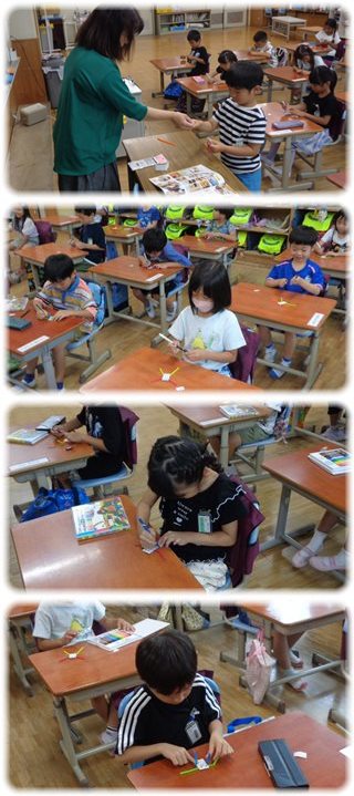 1年生が図工の時間に作っていたのは“すきまちゃん”。