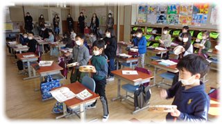 ランチルームのスクリーンに主催者から提供された映像を大きく映し、子どもたちの奏でる合唱のきれいな歌声を味わってもらいました。