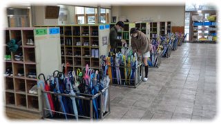 予鈴が鳴って、朝の会の様子を見に行こうと、校長室を出て西階段に向かうと、昇降口に6年生が2人。