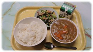 9月の献立テーマが「元気いっぱいメニュー」ということで、 今日のポークカレーには夏の暑さで疲れた体を元気にする、豚肉、たまねぎがたっぷり入っていました。