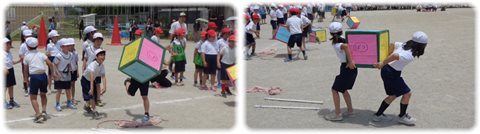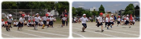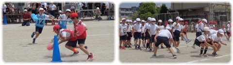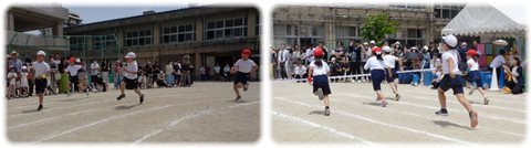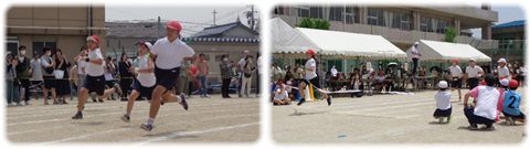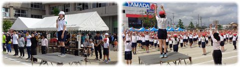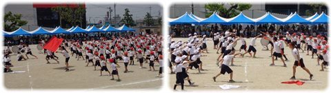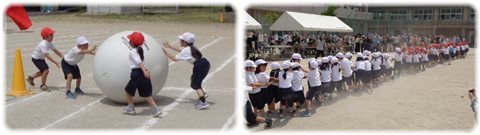 応援合戦では、子どもたちのやる気が爆発し、大きな声と動きで歌い踊るので、ついつい流れる音楽より早くなってしまいますが、子どもたちの息はピッタリ。