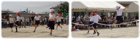 競技に臨む子はもちろん全力で走り、観覧席の子どもたちも、フィールドに陣取った応援団のリードに合わせて全身を使って全力で応援。