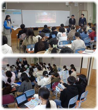 次は、スライドを見ながら話を聞いて、県庁の仕事を勉強。