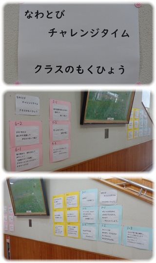 「なわとびチャレンジタイム」の8の字とびで目指す、クラスの目標が出そろいました。