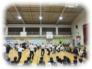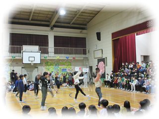 クイズの答えを考える間は、流れる音楽に合わせて3年生がダンスを踊ります。