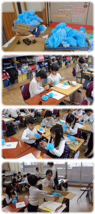 想像するに、6年生を送る会で出し物を披露するときに、飾りとして手に着けるのではないでしょうか。