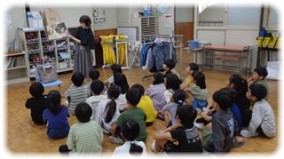休み明けの今日は、図書ボランティアさんの“読み聞かせ”で始まりました。