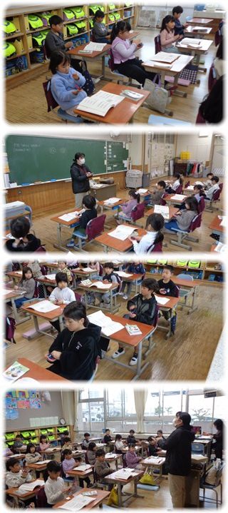 教師と一緒に言葉に出して
