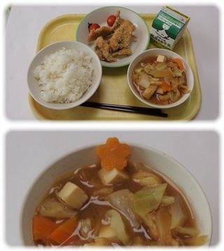今日のメニューの「鶏肉の茶らあげ」に、四日市産のお茶が入っています。