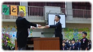小学校の課程を修了したことを証する卒業証書を手渡す“卒業証書授与”の場面では、名前を呼ばれた子どもは「はい」と、はっきり大きく返事をし、壇上に上がって私の前へ。