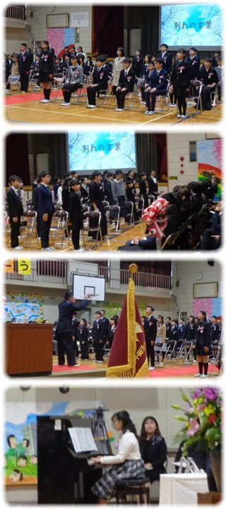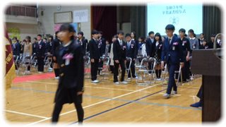 ピアノに合わせて式場の全員がお辞儀をして、今年度の卒業仕様書授与式が、滞りなく無事に終わりました。