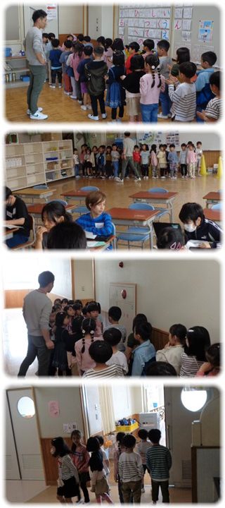後ろの出入り口から教室に入ると、5年生が外国語学習の真っ最中でした。