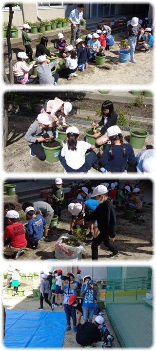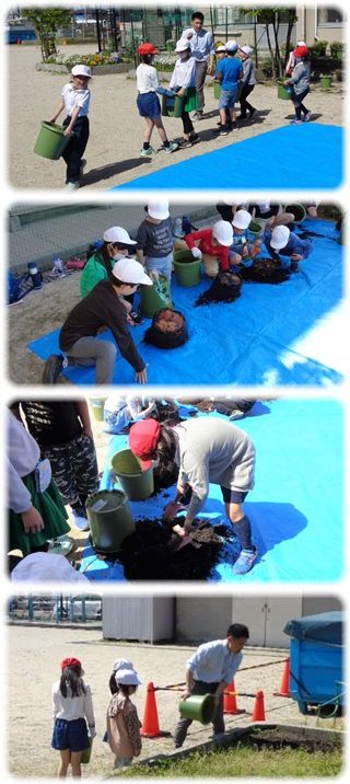 生活科の学習で野菜を育てる2年生が、その苗を植えるための準備を始めていました。