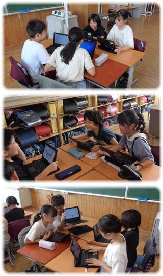子どもたちはタブレットを出し、「発表ノート」の1枚のシートを班のみんなと共有して、活動を勧めました。