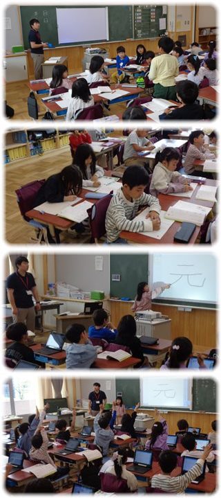 問題ができた子が、書いた漢字をスクリーン映して、みんなに問いました。