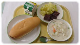 メニュー:コッペパン、牛乳、くじらのノルウェー風、ゆでキャベツ、クリームシチュウ
