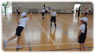 ◇6年生と、下級生が組になって、サーブの練習やラリーを楽しむ“バドミントンクラブ”
