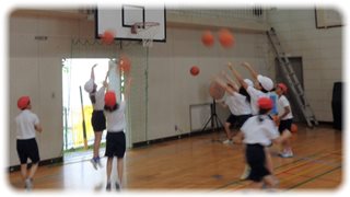 ◇ゲームを前に、シュートを練習する“バスケットボールクラブ”