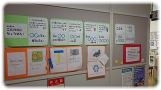 視力測定の終わった保健室前の掲示板には、目に関する掲示物がはられています。