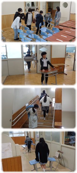 移動先から、必要な数がそろったとの連絡が次々と職員室へと入り、全ての教室で完了したことが確認されて作業は終了しました。
