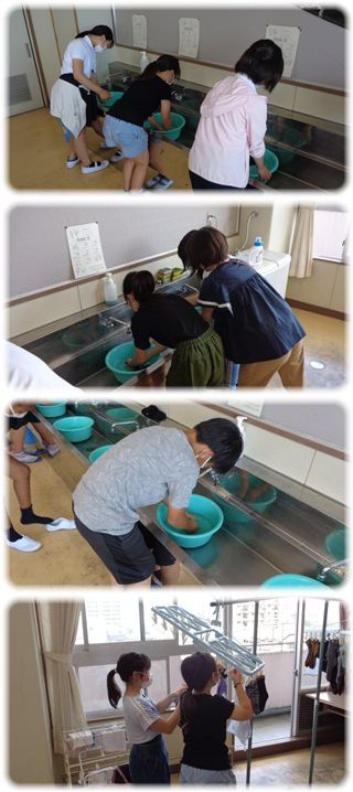 家庭科室の後ろの流しで洗濯していたのは6年生。