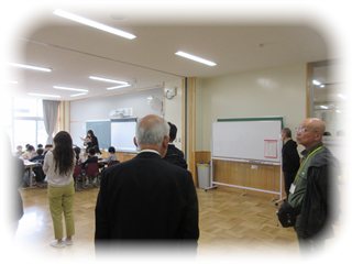 委員の方にも全学年の教室をまわり、こどもたちの学習に向かう姿をご覧いただきました。