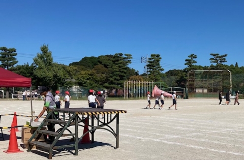 9月29日(金)午後。明日の運動会に向けて会場を設営しています。