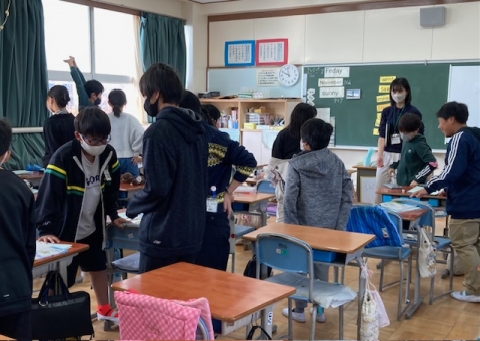 11月24日(金)、6年生の英語の授業に羽津中学校の上村先生が参加してくれています。羽津中学校区学びの一体化の取り組みの一つです。3クラスに1時間ずつ入っていただきます。
