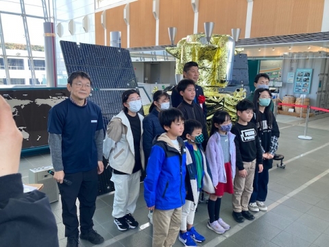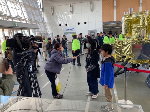 1月6日(土)、火星衛星探査機MMXの模型に、羽津っ子たちが太陽電池を取り付けました。ポートビルで開催されている、「はやぶさ2&MMXタッチダウンプロジェクトin四日市」の一コマです。
